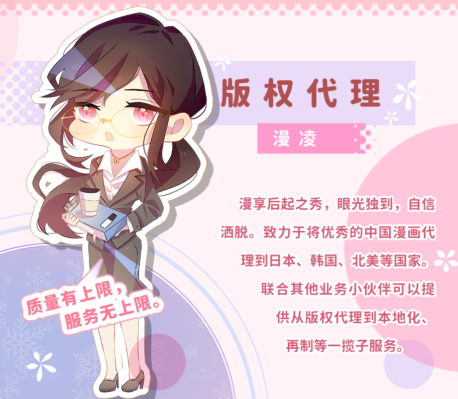 78动漫于2017年成立于北京,现已在香港、成都、沈阳三地设有子公司,业务涉及动漫本地化、动漫版权代理、动漫再制、原创动漫创作等多个领域。 我们的理念:择一事终一生,78动漫希望做动漫行业的匠人,希望为每个用户提供极致的服务和作品。